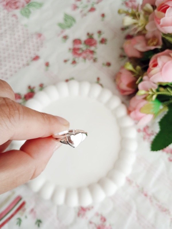 Anillo de acero blanco al estilo Chunky con dije de corazón ♥️