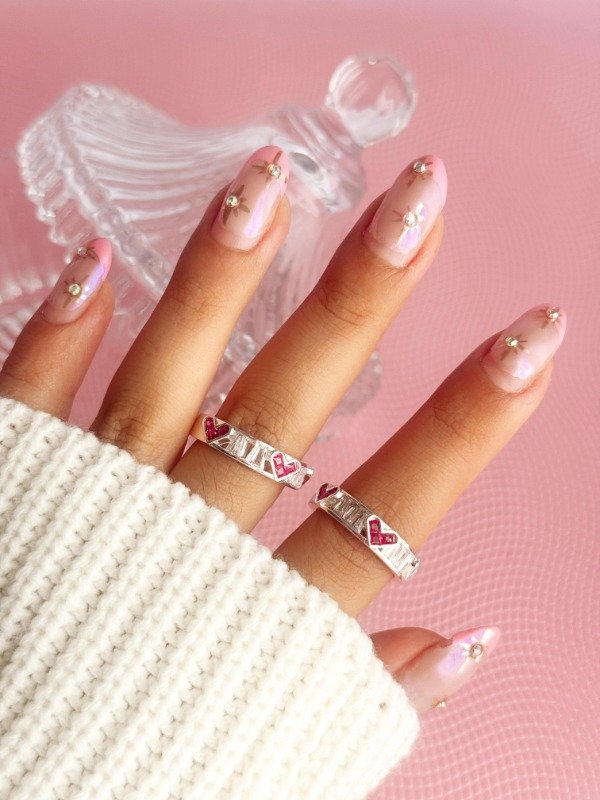Anillo de acero blanco con cristales en forma de corazón