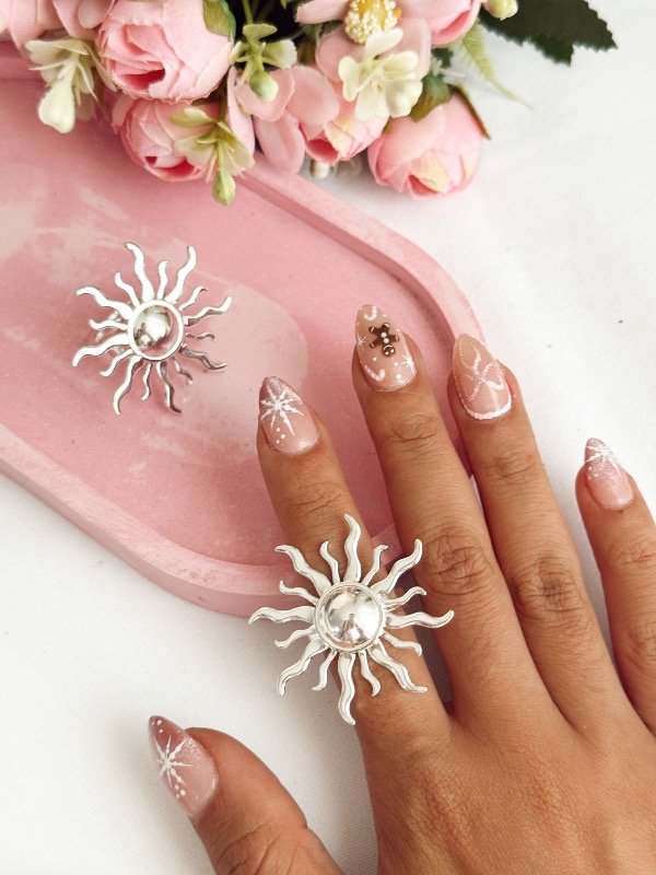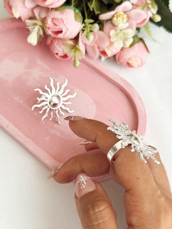 Anillo de acero blanco con dije en forma del sol ☀️ Elegir talle 💫