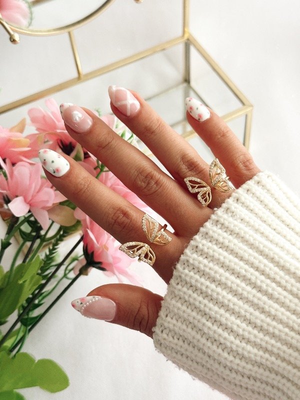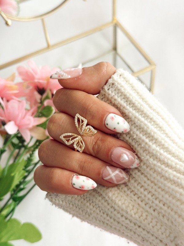 Anillo de acero dorado 💕 con cristales en forma de mariposa. Es regulable.