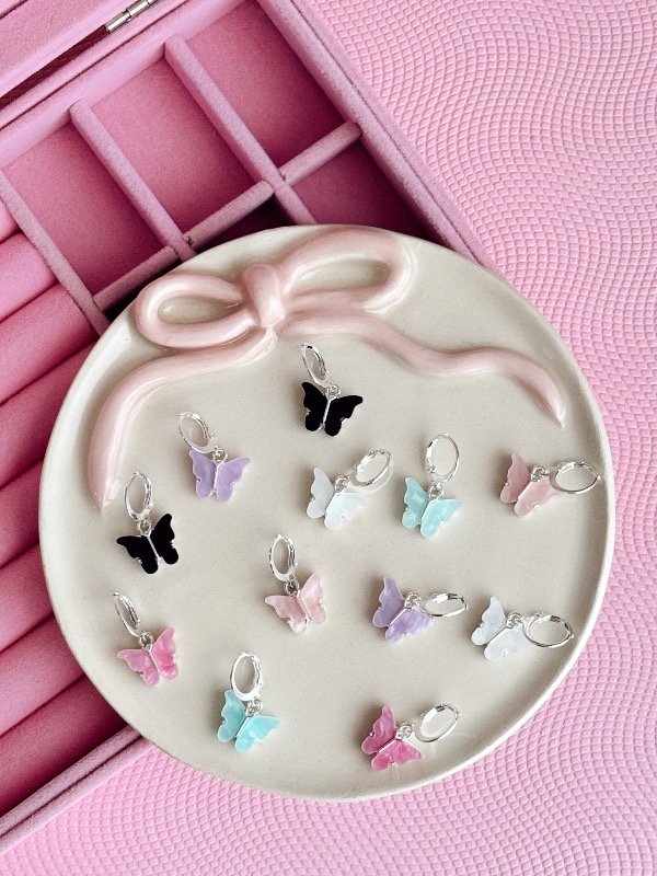 Argollitas de acero blanco con dijes colgantes en forma de mariposas 馃 de n谩car! Podes elegir tu color favorito 馃寛 Miden 1 cm de di谩metro