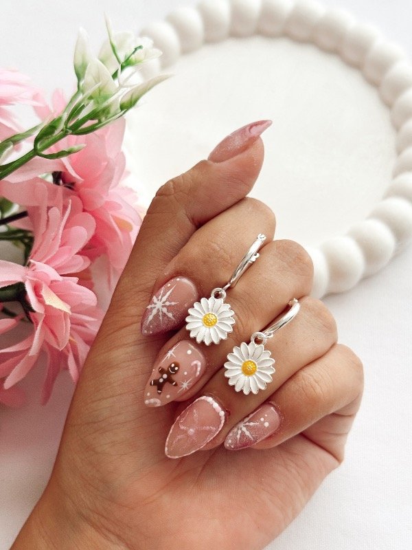 Argollitas de acero blanco con dije colgantes en forma de margarita esmaltada en color✨ Miden 1 cm de diámetro