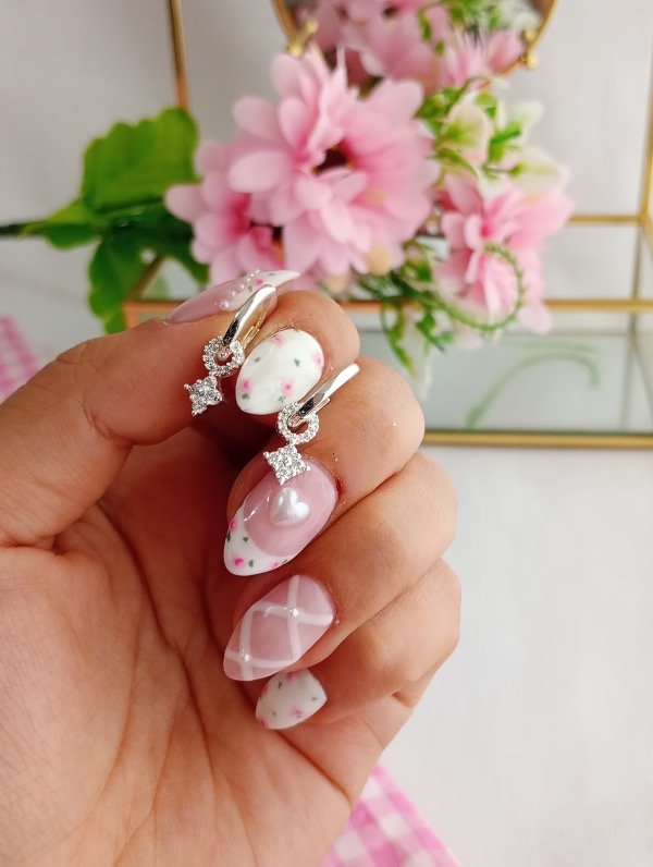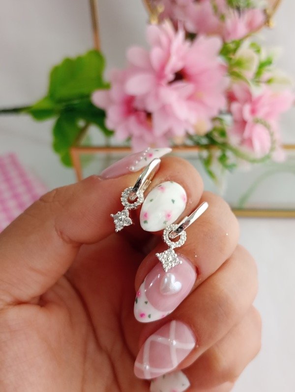 Argollas de acero blanco con Strass de 1 cm de diámetro y dije colgante