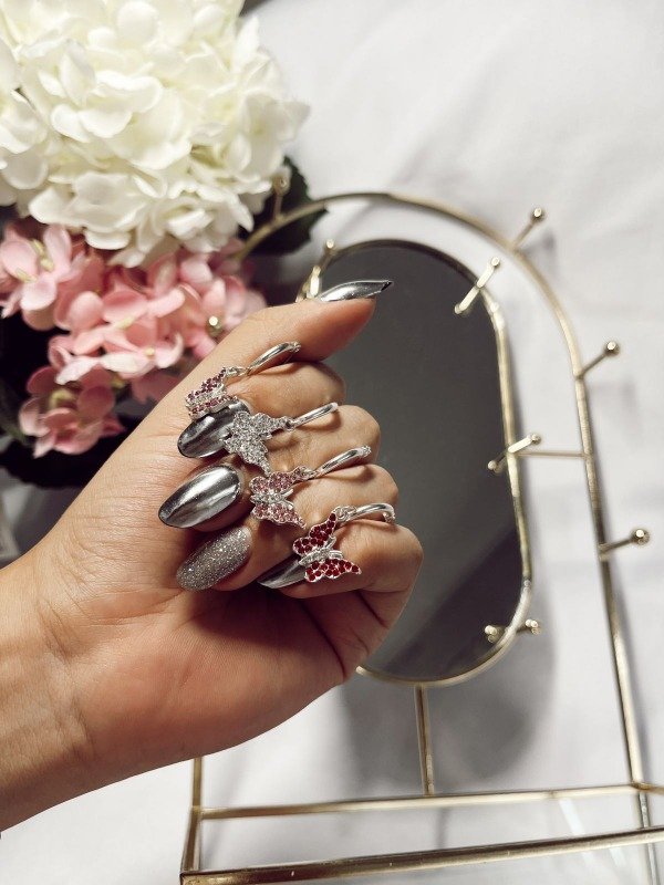 Argollas de ACERO BLANCO con mariposas de strass (elegir color)