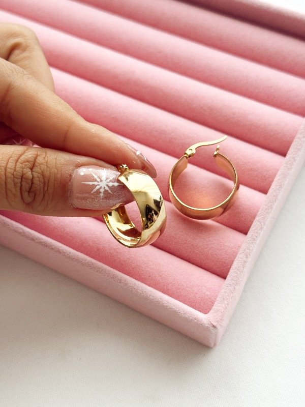 Argollitas de acero dorado infladas de 2 cm de diámetro ✨🙌🏼