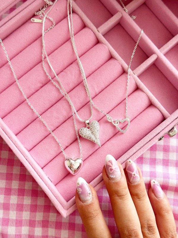 Cadenita de acero blanco con dije pasante en forma de corazón ♥️ inflado al estilo Chunky. Mide 45 cm de largo con una cadenita extra de alargue de 5 cm