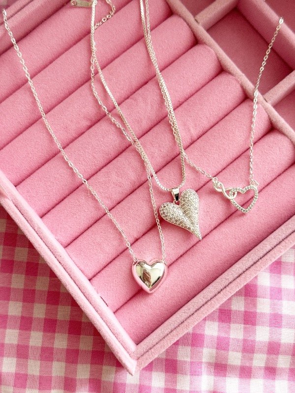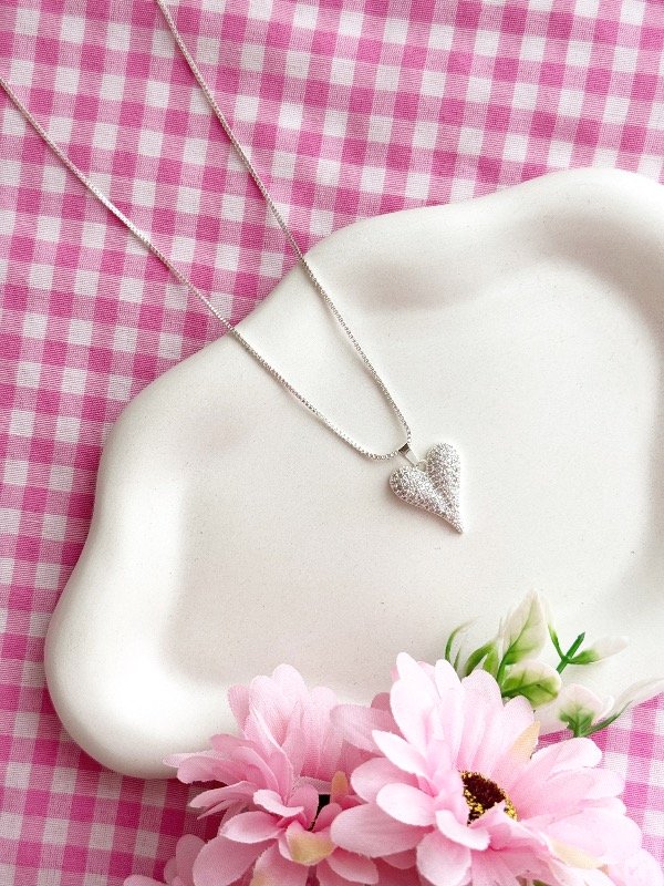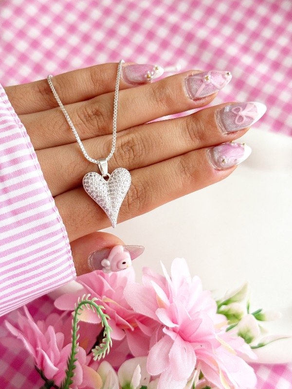 Cadenita de acero blanco con dije de corazón con strass ✨🩷 Mide 45 cm e incluye una cadenita de alargue de 5 cm extra para regularla