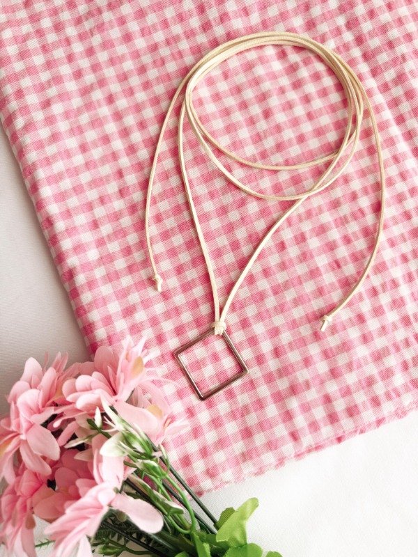 Choker regulable de 1,50 mts de largo. Adaptable a varias formas de uso. Gamuza nobuk color manteca.