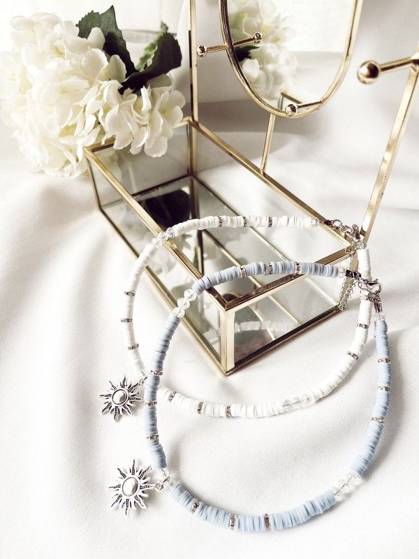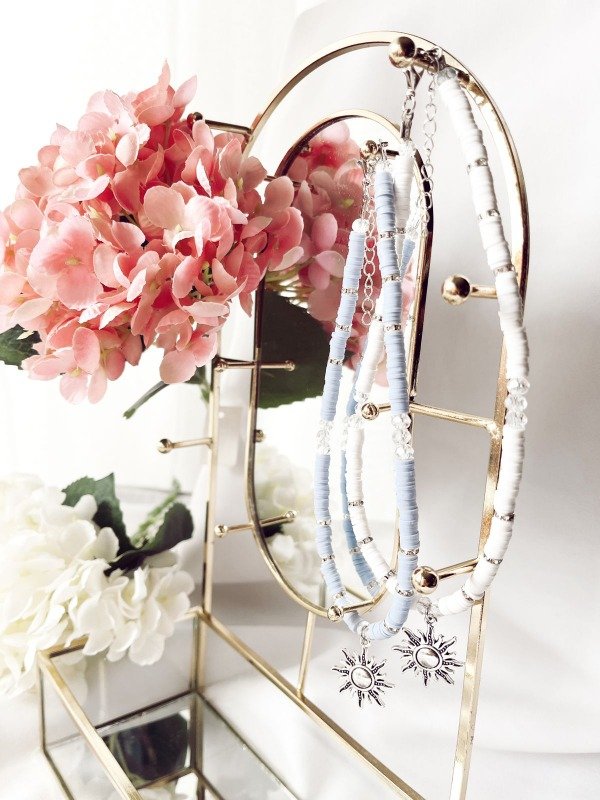 Collar de fimo (color a elección) + cristales de roca + dije plateado