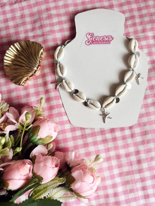 Collar de caracoles naturales 🤍🙌🏼 con dijes colgantes! Está tejido en hilo encerado con nudo regulable para mayor practicidad al momento de usar el collar 😁