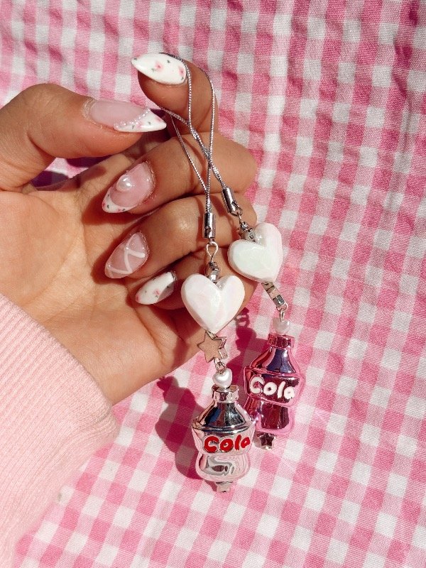 Charm con cuentas plásticas y dije de coca cola metalizado