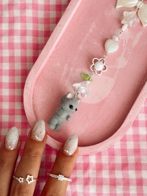 Llavero hecho 100% a mano 馃檶馃徏 con cuentas pl谩sticas de colores y un dije de terciopelo en forma de mascota 馃挆