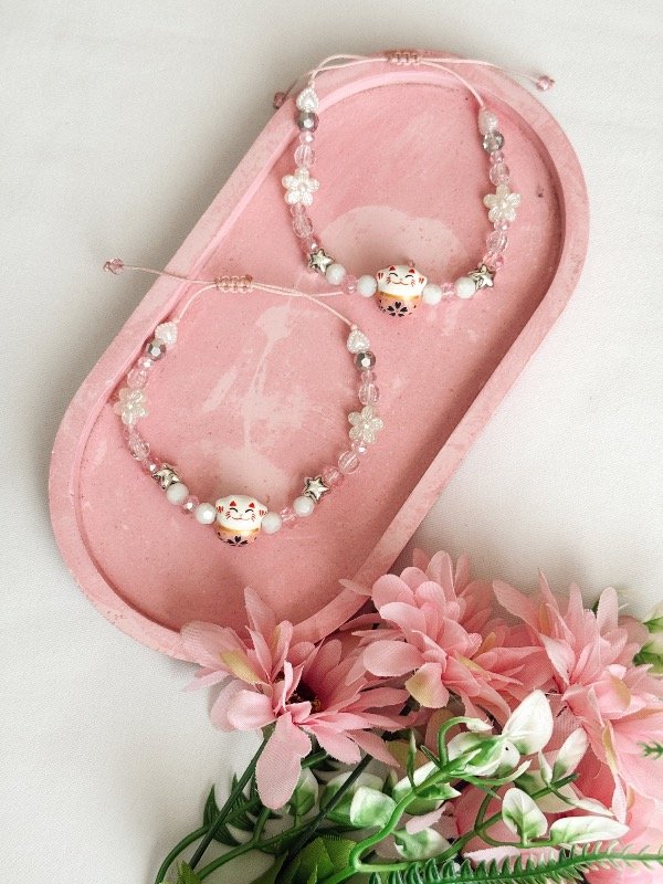 Pulsera Gatito Cerámica Rosa