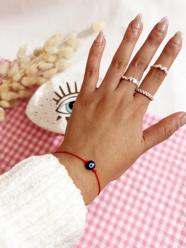 Pulsera de hilo chino suave con ojito pasante de vidrio. Regulable.