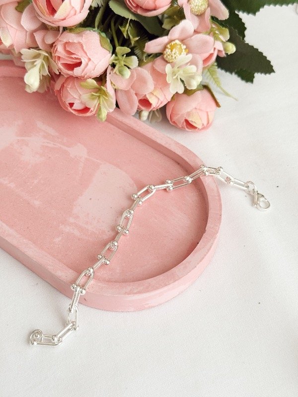Pulsera con eslabones gruesos de acero blanco 馃馃檶馃徏