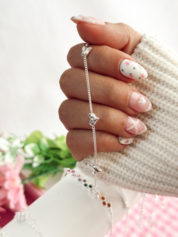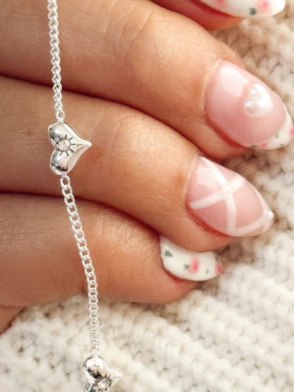Pulsera de acero blanco ✨ cadenita súper delicada con corazones y strass incrustado, incluye cadenita extra de alargue para regularla 😁🩷