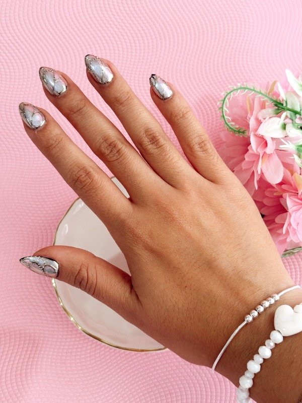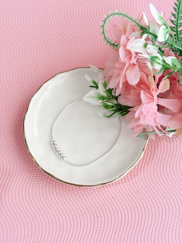 Pulsera de acero blanco ✨ con cuentas fijas y estilo cola de rata, súper delicada 🌸🫶🏻