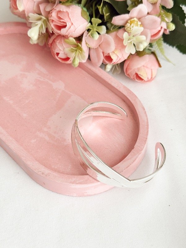Esclava de acero blanco con forma entrelazada regulable 馃挮馃