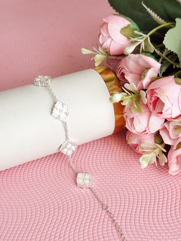 Pulsera de acero blanco ✨💫 con flores de nácar intermedias