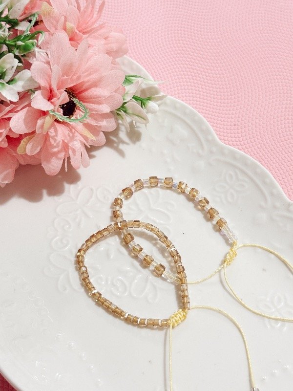 Pulseras realizadas en hilo chino regulables con uso corredizo. Extiende hasta 30 cm.