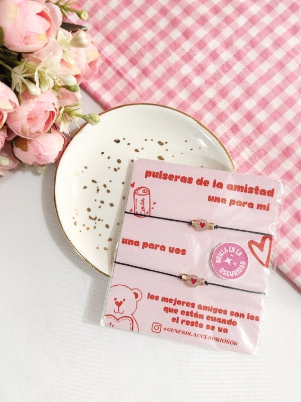 Pulseras de hilo chino regulable hasta 32 cm con dije plástico que brilla en la oscuridad.